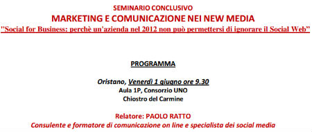 Il fatto di essere invitato a tenere un seminario sul Social Web nel quadro di un progetto “istituzionale” (creato dalla felice accoppiata locale camera di commercio …